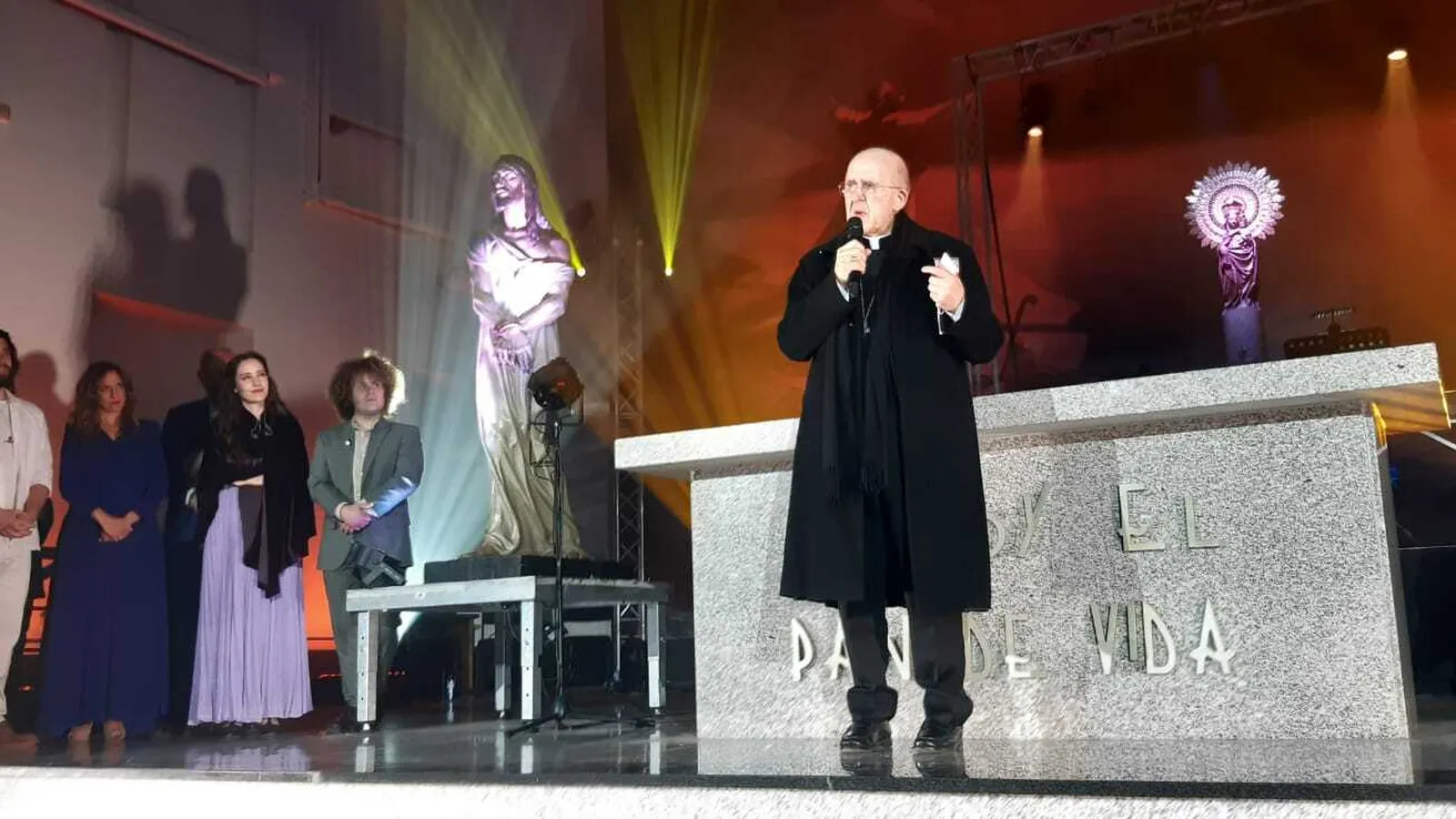 Tras la representación, Osoro subió al escenario para felicitar al elenco y agradecer el espectáculo. En su breve reflexión, el cardenal destacó dos frases de la pieza. 'Te acompaño en el camino de la cruz', de la primera estación, y "otra, para mí entrañable, de la 13ª estación". ¿Cuál? 'Hijo mío, ¿qué te han hecho siendo bueno como el pan?'.