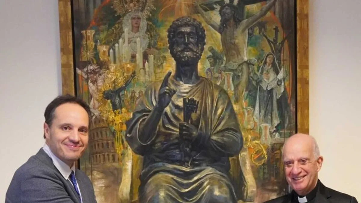 “Esta preciosa pintura ha sido una ofrenda de los patrocinadores andaluces de la Gran Procesión del Jubileo de las Cofradías para la Santa Sede, y en ella el pintor ha querido reflejar todas las imágenes que participarán en la Gran Procesión de Roma, por lo que ha estado en permanente contacto con el Dicasterio de Evangelización. El significado intrínseco de la obra lo encontramos en la intención de poner de manifiesto el reconocimiento, por parte de nuestra Iglesia, del papel trascendental de las Cofradías, en el momento presente, sin olvidar el camino recorrido por la religiosidad popular y la importante labor evangelizadora de sus procesiones”, ha explicado Paloma Saborido.