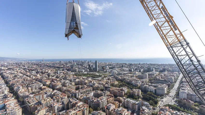 Con la colocación del brazo inferior, la torre de Jesús de la Sagrada Familia alcanza 162,91 m de altura
