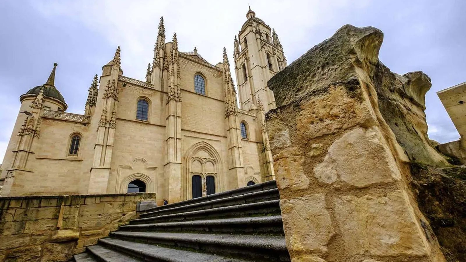 La catedral actual fue construida con planos de Juan Gil de Hontañón, quien por aquel tiempo también dirigía las obras de la catedral nueva de Salamanca. La primera piedra fue colocada el día 8 de junio de 1525 y en su construcción colaboraron activamente todos los gremios y todas las cofradías “echando piedras”, como así era llamada tan santa y edificadora tarea. Se inauguró el año 1558. Mide 105 metros de largo, 50 de ancho y 33 de alto en la nave central. Destacan las torrecillas, los arbotantes esbeltos y la poderosa torre de 90 metros de altura, que forma parte de la fachada principal. El conjunto catedralicio segoviano es uno de los últimos erigidos en España de estilo gótico tardío…