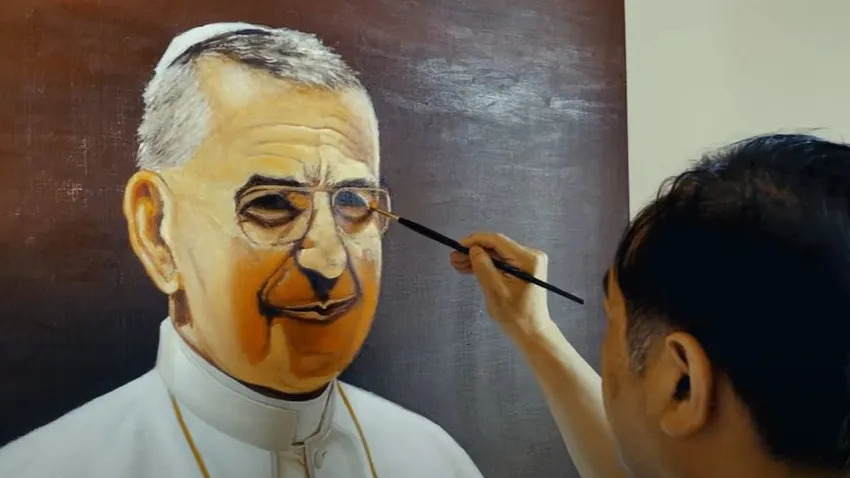 La Biblia y la cruz han sido una fuente de inspiración para el artista de renombre internacional Zhang Yan, que ha realizado el retrato oficial del nuevo Beato. La obra ha sido donada por el maestro a la Fundación Vaticana Giovani Paolo I, presidida por el cardenal secretario de Estado Pietro Parolin, y por la vicepresidenta Stefania Falasca.