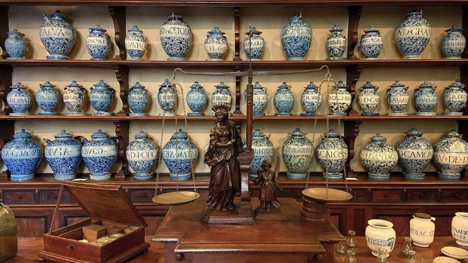 "El aspecto extraordinario de la botica es precisamente su integridad. Aún se conservan objetos muy diversos, desde enormes prensas hasta los recipientes para las hierbas, pero sobre todo lo más interesante: los ingredientes que se mantenían en los jarrones y en los que encontramos hierbas, corales, ámbar, semillas, hojas de varias plantas y esto lo hace una de las farmacias más interesantes de toda nuestra península", explica Pesante.