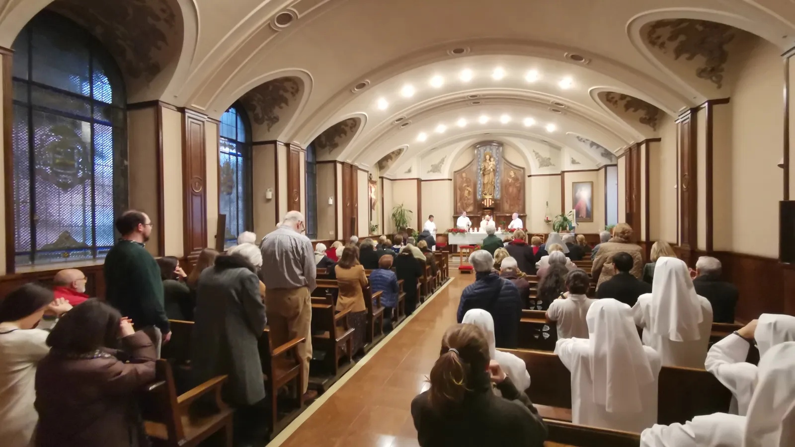 Primero tuvo efecto la Misa diaria de las cinco de la tarde, concelebrada por los tres capellanes del centro, y luego se hizo un acto de adoración Eucarística, que fue introducido por el Capellán Responsable del Hospital, Julio Badenes, quien explicó detalladamente lo ocurrido, dado que se había divulgado muchas mentiras, falsedades y errores. Mencionó en su intervención que sólo Baltasar Bueno en Religión Digital había narrado la realidad de los hechos bien.