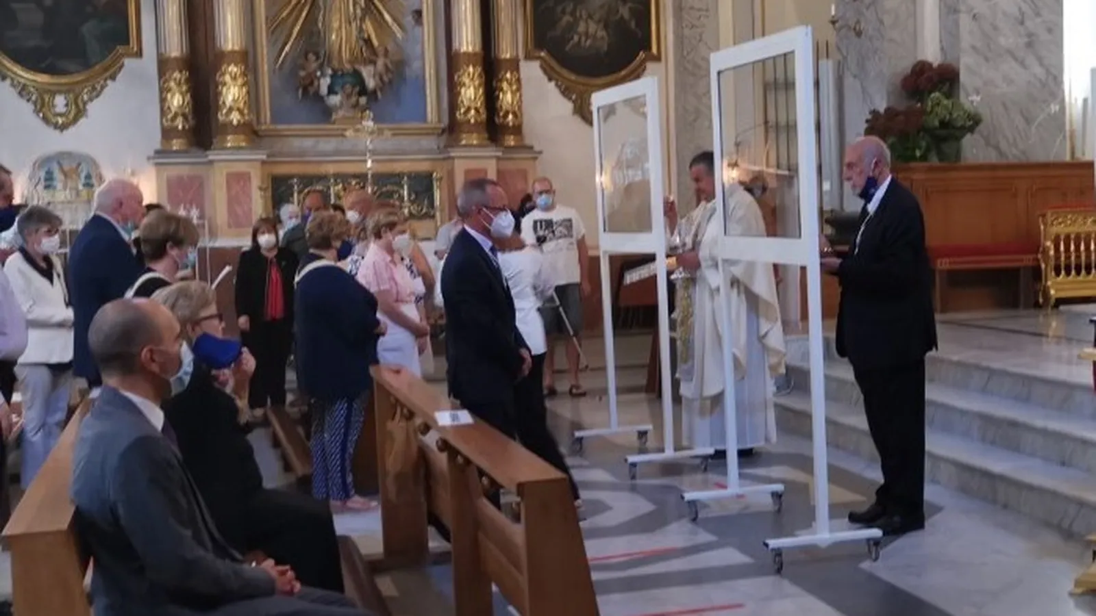 Ayer en las fiestas de la Virgen de los Desamparados de la barriada de Sagunto de la ciudad de Valencia, popularmente conocidas como Fiestas de la Rosquilleta, el cura párroco José Ricardo Albelda, y el ministro extraordinario de la comunión que le ayudaba, la distribuyeron parapetados por una mampara de cristal. Se trata de una estructura de hierro a manera de ventanal, bajo el cual daban la comunión en la mano a los fieles. Estos elementos son movibles, al tener bajo unas ruedecillas que facilitan su traslado.
