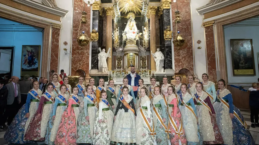 Durante el ejercicio fallero, las Falleras Mayores acuden en tres ocasiones a los pies de la Virgen: cuando nombradas, el día de la crida y el día del desfile de la Ofrenda de Flores por el centro de la ciudad. En la primera jornada, suben al camerino a besar su mano. La imagen de la Virgen de los Desamparados no falta en ningún casal de las comisiones falleras.