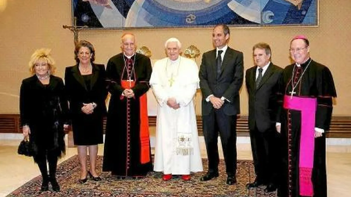 Benedicto XVI, con Camps, Barberá, su secretario y el cardenal Garcia Gasco