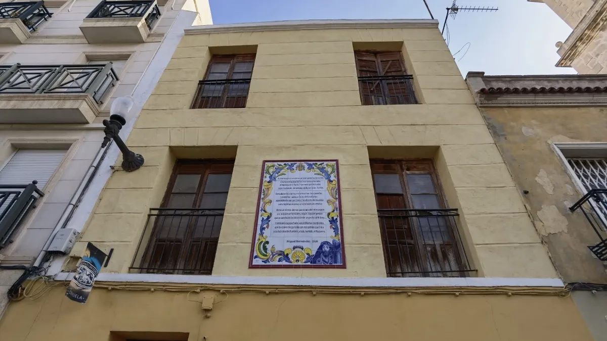Preciosa es la humilde casa de la familia, sencilla, diáfana, con su corral y huertecito para autoabastecerse, todo perfectamente organizado. Una casa que está al pie del curioso ermitorio de la Virgen de Monserrate, la patrona, construcción en modo puente sobre la calle, desde cuyo ventanal predicara san Vicente Ferrer a esta ciudad que acabaría siendo sede episcopal. La casa está llena de grafittis con sus versos. Y en la montaña sobre la que se recuesta el arrabal que la anida hay un enorme retrato del poeta mira y admira Orihuela.