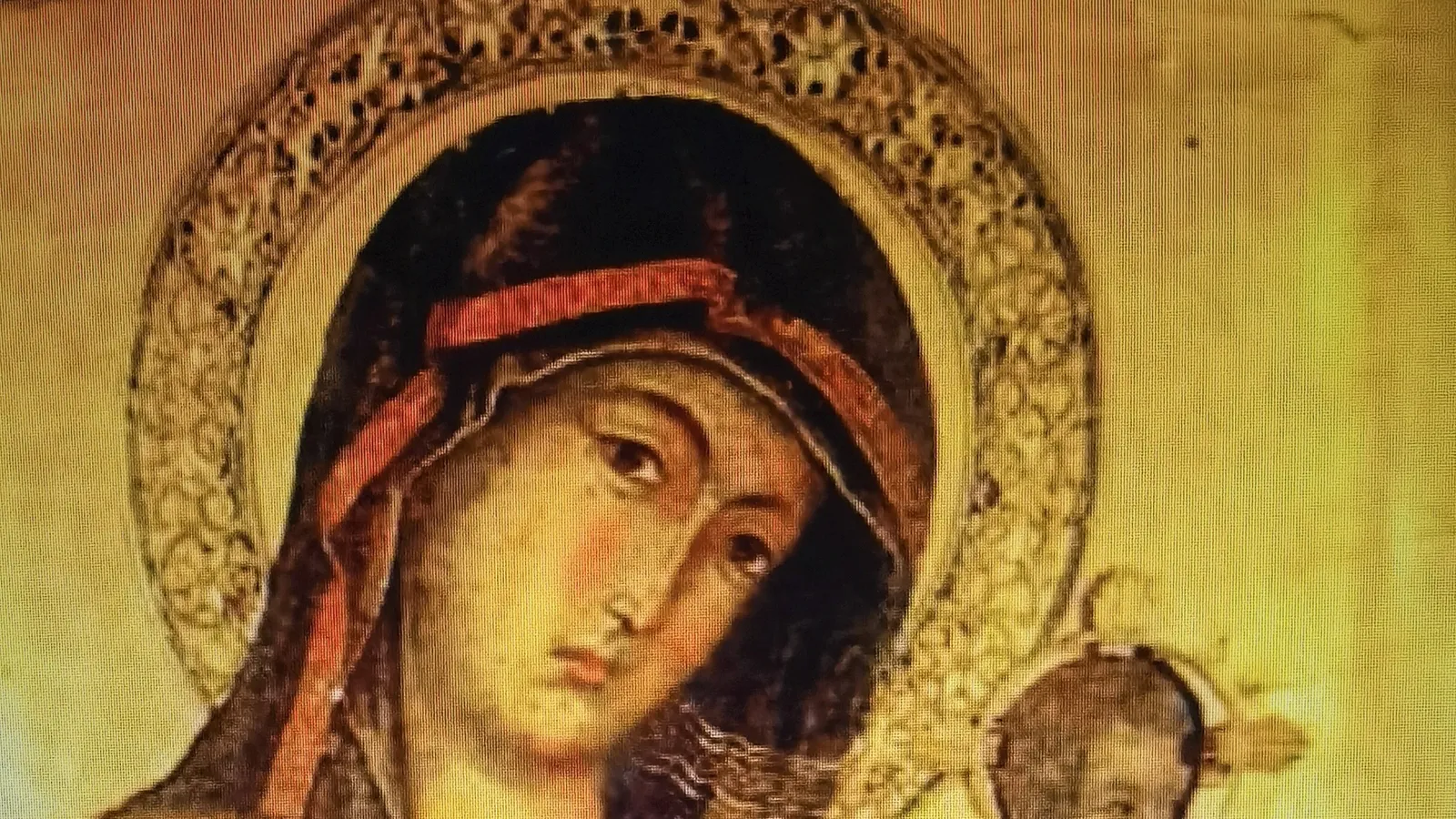 Orellana leyó en un libro del P.Vilarroig su descripción de la pintura de la tabla del milagro, dice: “Es esta Sagrada Imagen sumamente graciosa, de un rostro vivo, y modesto, que concilia su dulce agrado con la mas respetosa, y devota piedad: el hijo descanza sobre el brazo siniestro de la madre, y ostenta en sus manos un pajarillo atado de un hilo en el pie, y jugando las alas hacia el lado de la epistola. Azia esta parte del altar mira el niño; y la madre como enternecido, y traspasada su corazón de dolor, mira azia la parte del Evangelio: tienen los dos muy resplandecientes las niñas de los ojos; el ropaje de madre, e hijo está pintado a lo egipcio, y los colores se admiran al presente tan vivos, y la tabla tan firme”. Añade que la tabla tiene dos palmos e altitud y palmo y medio de latitud.