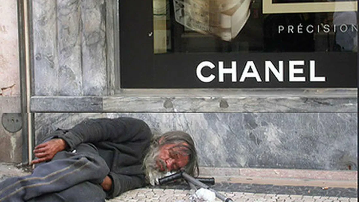 "Un hombre rico y un mendigo pobre que viven próximos el uno del otro, están separados por el abismo que hay entre la vida de opulencia insultante del rico y la miseria extrema del pobre"