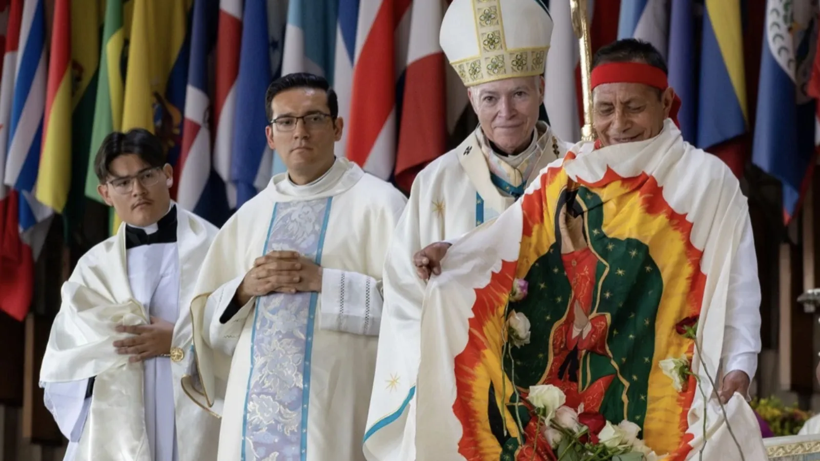 Todos los fieles aquí presentes nos encomendamos a ti, que brillas en nuestro camino como signo de salvación y de esperanza: ¡Oh clemente, oh piadosa, oh dulce Virgen María de Guadalupe! Amén.