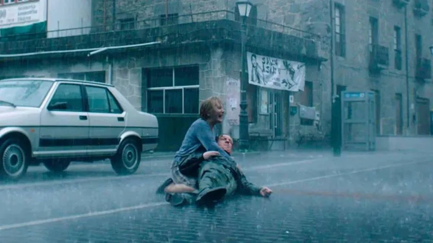 El relato audiovisual tiene otra dureza. En este caso es capaz de encarnar vivencias límite como impotencia, incomunicación, desgarro, tristeza, ira o crueldad. Menos profunda que la novela, pero más contundente afectivamente. Aquí las sensaciones son más epidérmicas: la sangre no te la imaginas, los rostros apesadumbrados encarnan los sentimientos y los paisajes afectan al alma. La puesta en escena, a pesar de algunas limitaciones presupuestarias, es real y elocuente para los que hemos habitado esas calles y esos tiempos. Vestuario, maquillaje, localizaciones y fotografía transmiten veracidad. Los actores principales son vascos en su totalidad, muchos de ellos guipuzcoanos. Ellos han vivido o les han contado de primera mano los hechos que representan. Los tienen pegados a su cuerpo. Lo que supone limitación en la selección actoral se convierte en una ganancia para la serie. Todos ellos nos trasladan a un escenario lóbrego con apenas ternura y encuentro.