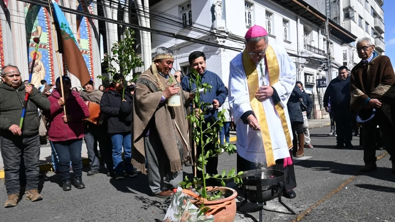 La novedad vino desde la plaza de la ciudad, afuera de la catedral, donde se realizó un acto con la presencia de autoridades locales y representantes del pueblos huilliche que habita la zona (rama austral del pueblo mapuche). Aquí, la sociedad dio la bienvenida al nuevo obispo de Osorno a quien se le vio participando con atención y entusiasmo pese a los largo de las ceremonias indígeneas.
