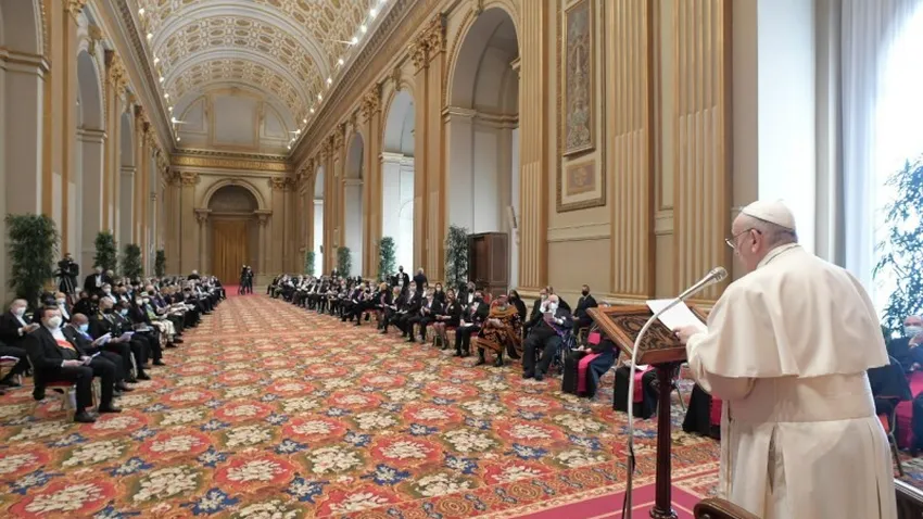 "Lamentablemente, la crisis de la política y de los valores democráticos afecta también a nivel internacional, con repercusiones en todo el sistema multilateral y la evidente consecuencia de que organizaciones pensadas para favorecer la paz y el desarrollo, sobre la base del derecho y no de la ley del más fuerte, vean comprometida su eficacia", planteó el Papa este lunes en el encuentro en el Aula de las Bendiciones del Vaticano.