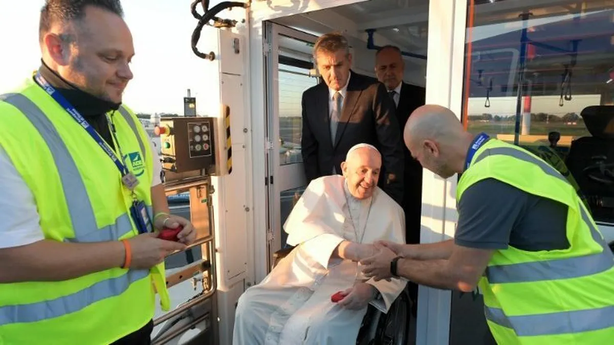 Mientras el avión sobrevolaba Serbia, el Papa recorrió los pasillos ayudado de un bastón para saludar uno por uno a los periodistas, entre pedidos de fotos y firmas de libros.