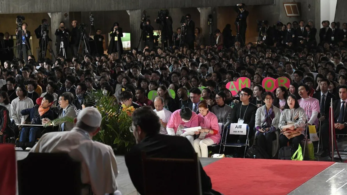 “Lo más cruel del acoso escolar es que hiere nuestro espíritu y nuestra autoestima en el momento en que más necesitamos fortaleza para aceptarnos a nosotros mismos y poder encarar nuevos retos en la vida”, planteó el Papa hoy durante su encuentro con jóvenes en la Catedral de la capital japonesa. Justo después de encontrarse con el emperador Naruhito.