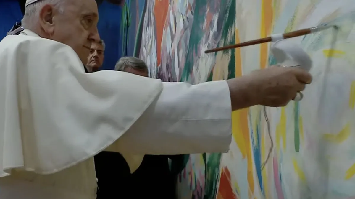 Durante su visita a la sede de Scholas, el Papa dio la pincelada a un mural hecho por jóvenes de la fundación junto inmigrantes, trabajadores, referentes del mundo de la educación, el arte y el deporte, adultos mayores, jóvenes en prisión y desplazados.