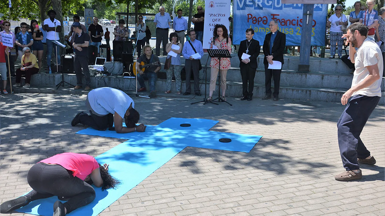 - La realidad de Madrid y de Europa, nos muestra que la migración se ha quedado, está aquí, es parte de nuestra sociedad. Por eso el gesto celebrativo de esta tarde atiende por una parte a ser la voz de los que ya no la tienen, lo que se han quebrado viviendo-muriendo en la esperanza, los que han sido manipulados y violentados por intereses y mafias injustas y corruptas. Pero también es una llamada a todos, sin excepción, para implicarnos en la viña del Señor, enfrentándonos juntos ante la injusticia y la desigualdad. Jesús sale todos los días a la plaza a la calle para buscar trabajadores del Reino. Aquí no están los que trabajan sólo por el salario, representáis a los que han encontrado el tesoro del reino y de lo humano, los de corazón universal y fraterno. Dios quiere que cultivemos la tierra, sin excepción y nos llama a todos, a todos, a todos, para que sea la casa común.
