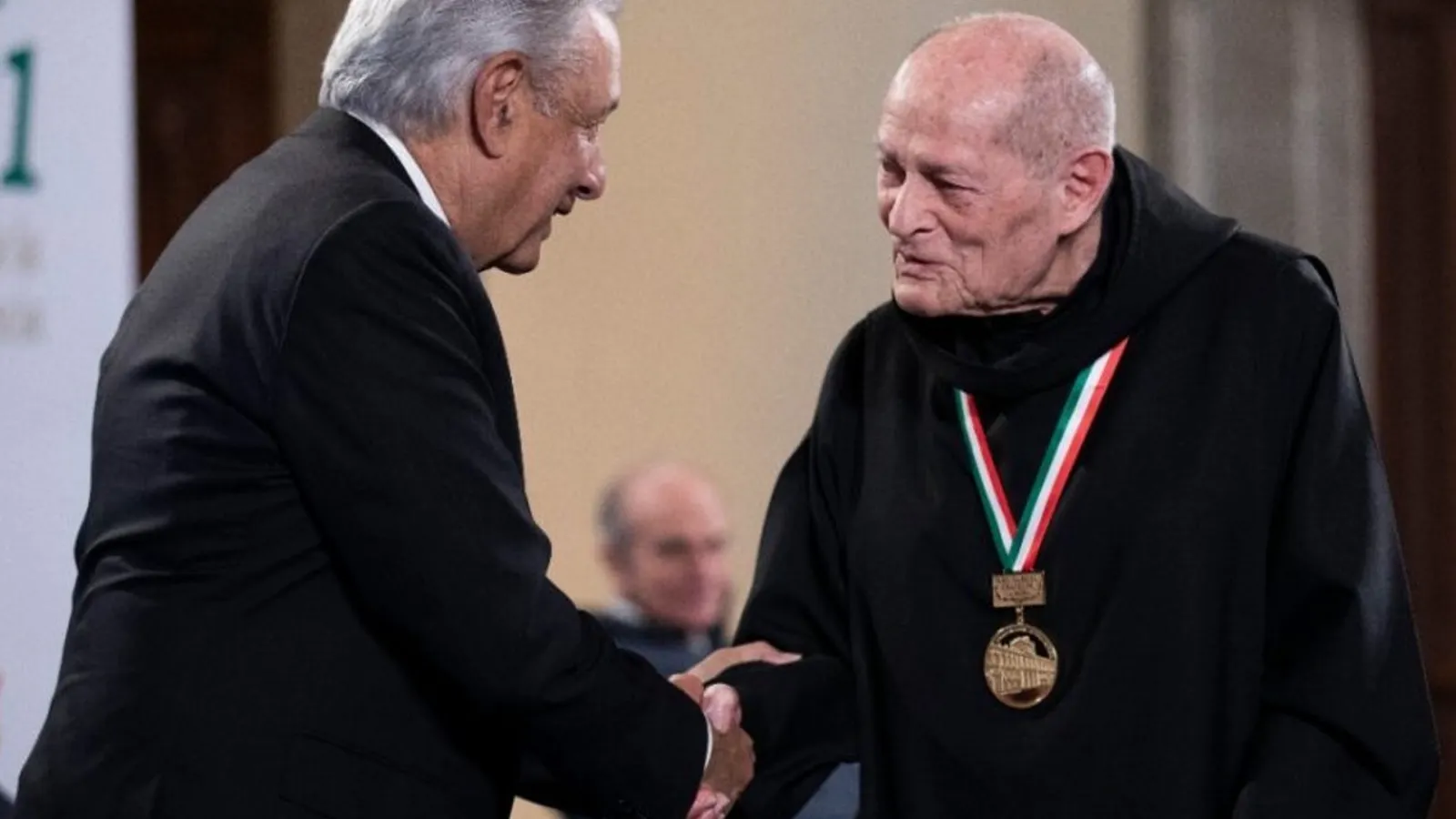 Al recibir el premio, Fray Gabriel pidió al presidente López Obrador no recortar presupuesto a las entidades encargadas de proteger el patrimonio histórico