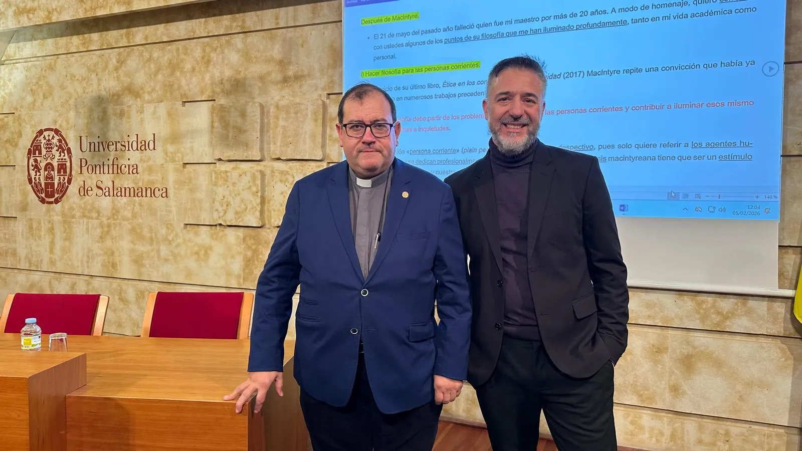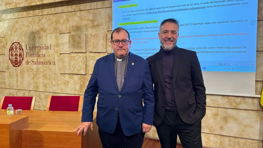 (UPSA).- Con el objetivo de honrar a una de las figuras más importantes del estudio de la ética de la segunda mitad del s.XX, Alasdair Macintyre, la Facultad de Teología de la Universidad Pontificia de Salamanca (UPSA) ha organizado esta mañana en el Aula de Grados una sesión dedicada a la figura de este pensador. Bajo el título ‘After MacIntyre: una introducción’, el miembro fundador de la Comunidad Iberoamericana de Estudios Macintyreanos, Maximiliano Loria, ha pronunciado una conferencia a modo de introducción previa al seminario que se celebrará esta tarde dirigido a profesores y estudiantes de posgrado.