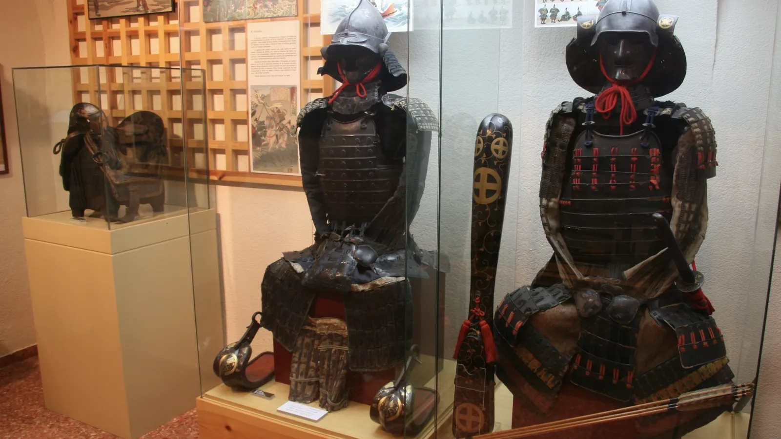 La sala siguiente está dedicada al ‘Japón bélico’: armaduras de samurai, sillas de montar, katanas y otros tipos de espadas, cuchillos usados para ejecutar el ‘seppuku o harakiri’, el ritual de suicidio japonés llevado a cabo para morir con honor, especialmente entre los samurai, la élite militar del Japón feudal… También se exhiben en esta sala magníficos bronces y algunas excepcionales cerámicas, y, de los más de mil grabados ‘Ukiyo-E’ que hay en la colección, se exponen seis obras de Utamaro, Toyomuni, Hiroshitoshi y Gekko.