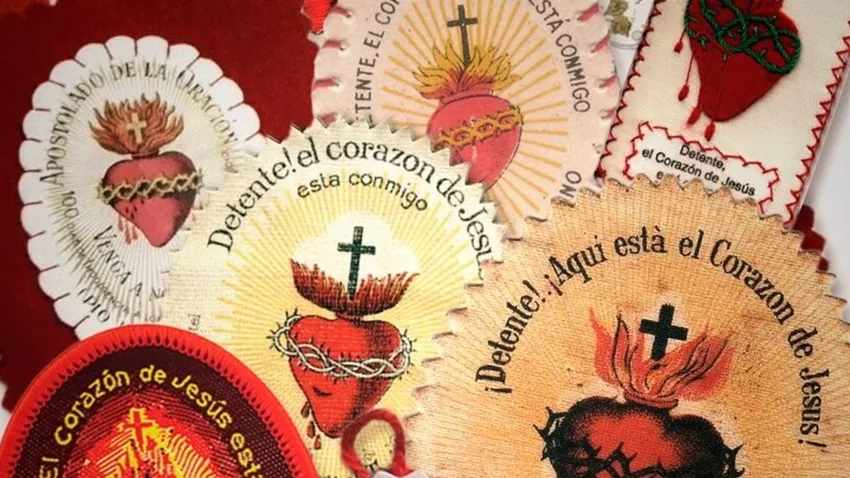 El tradicional amuleto, que representa el Sagrado Corazón de Jesús, supuestamente protegería a las familias del Covid-19, explica el portal web, vinculado "al Movimiento Regnum Christi y a la Universidad Francisco de Vitoria"