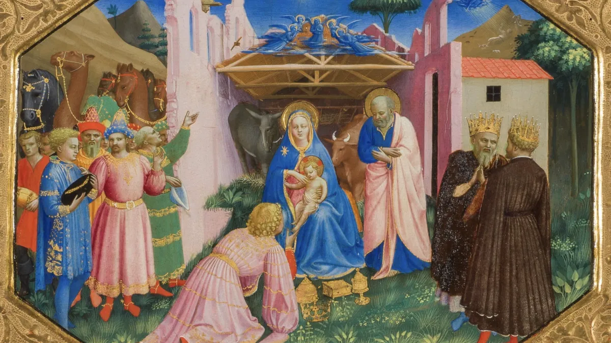 Fra Angelico también pinta a los tres blancos, pero en el caso de ‘Escenas de la Vida de la Virgen’ el que se arrodilla es el joven, mientras los otros dos charlan animadamente a un lado, con sus coronas bien brillantes y ajustadas sobre sus cabezas.