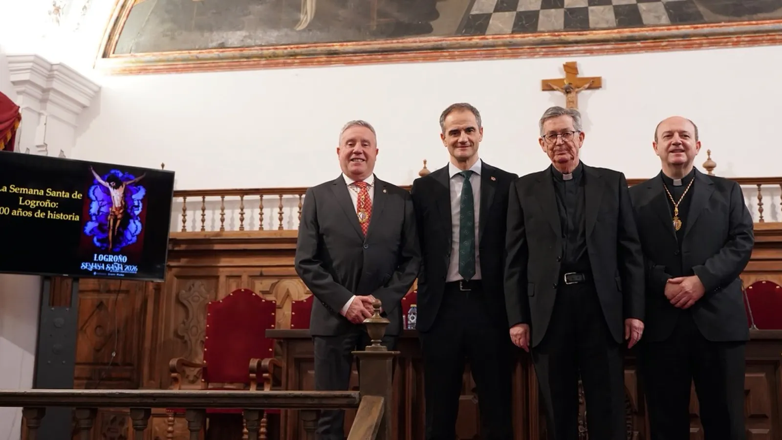 (UPSA).- La Universidad Pontificia de Salamanca (UPSA) ha acogido hoy en el Aula Magna el acto institucional de presentación de la Semana Santa de Logroño 2026. La sesión ha contado con la intervención del Rector, Santiago García-Jalón de la Lama; el delegado de Cofradías de la Diócesis de Calahorra y La Calzada-Logroño, Fermín Labarga García; el primer Teniente Alcalde de Logroño, Miguel Ángel Sainz García, y el Hermano Mayor de la Hermandad de Cofradías de la Pasión de la Ciudad de Logroño, Francisco José Marín de Diego.