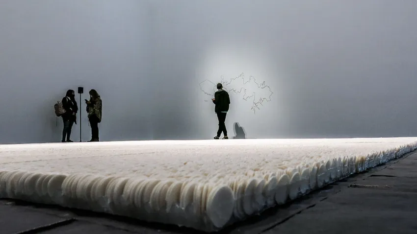 Lo primero que uno se encuentra al entrar a la sala casi vacía es un montón de hostias en el suelo evidenciadas por una intensa luz; las preguntas llegan inevitables: ¿qué representan todas esas hostias? ¿qué dicen en su silencio? Se queda uno como pasmado y no sabe qué responderse. En esas, unas voces que están en el aire, casi imperceptibles, empujan a arrimar el oído a los parlantes y allí se descubre que lo que estamos “oyendo sin oír” son relatos de desaparición forzada contados por la gente de Buenaventura, ese puerto del Pacífico en el que se ha cebado la violencia de nuestro país.