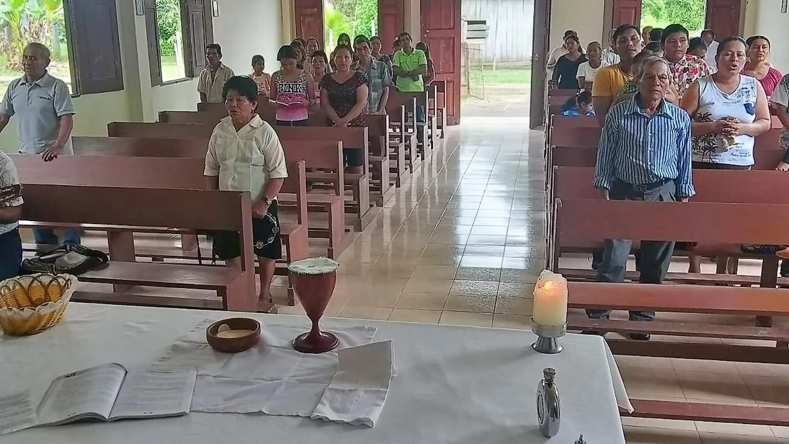 Eucaristía de domingo en este pueblo de la ribera del Amazonas