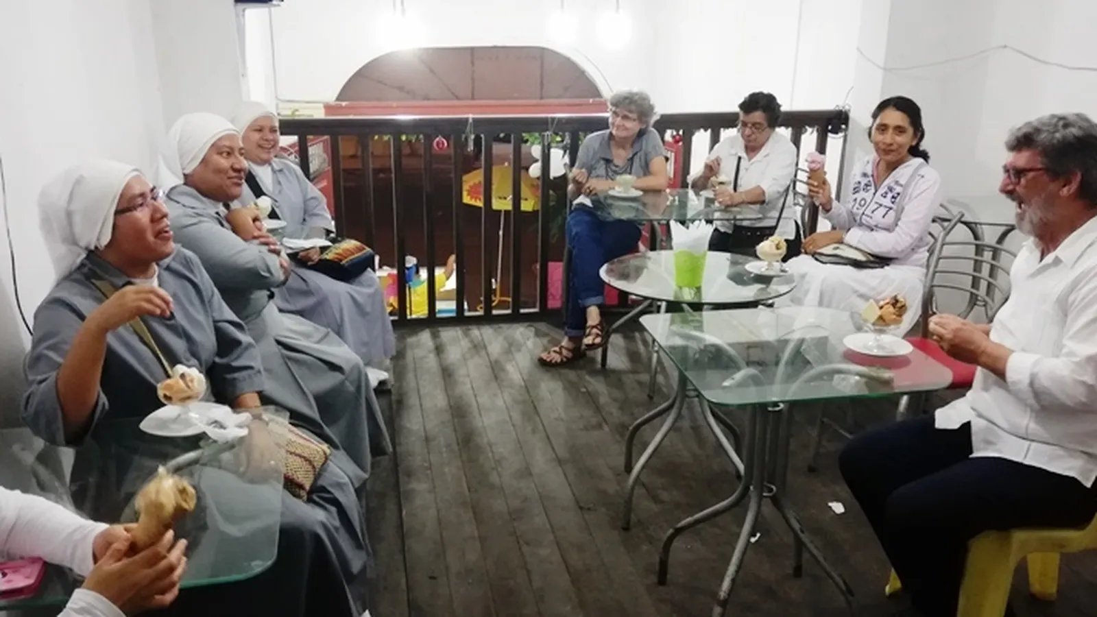 Y por la noche, salir a dar una vuelta por el centro de Iquitos y tomar un helado. Imprescindible para la salud y el equilibrio. Son las “horas vivas” de las que habla Khalil Gribran en “El Profeta” cuando trata de la amistad. Los momentos de espontaneidad, de compartir sencillo, en los que deponemos los roles y nos dedicamos a disfrutar de la compañía unos de otros. Esa carcajada de Monseñor Javier a punto de zamparse dos bolas sabor maracuyá y ron con pasas no tiene precio.