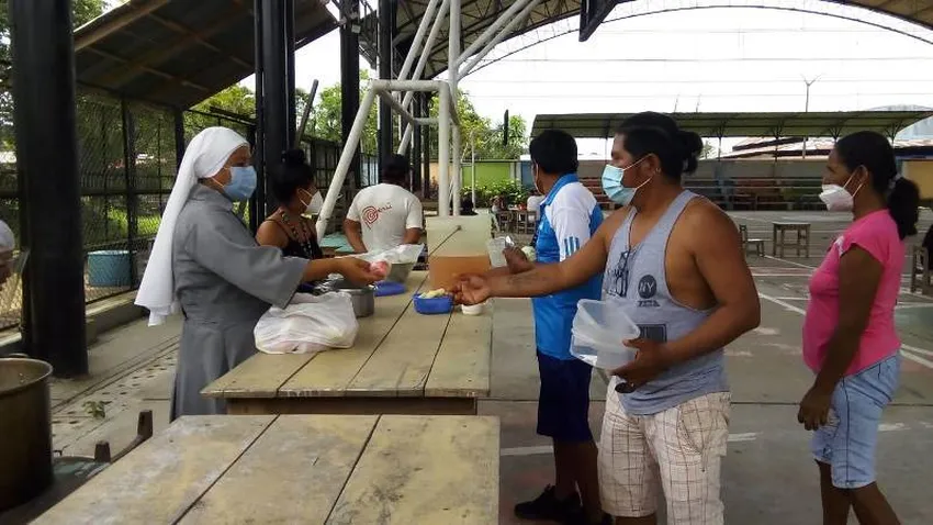 La idea me gustó y sonreí al pensar que solo las mujeres del concejo municipal habían tenido esa delicadeza y sensibilidad hacia los pacientes del colegio. Enseguida nos pusimos en marcha; las hermanas tunearon unas huchas del DOMUND que había en la misión y al otro día se presentaron Nancy, Evely y tres señoras más, bien pertrechadas con sus escudos faciales, alegres y resueltas a hacer una primera gira con las latas animando a los vecinos de Indiana a colaborar. Y así salieron junto con Adriana y las hermanas María José y María Ángela. Todas mujeres.