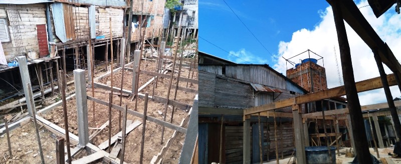 En Indiana me esperaba la reparación de la maloka, hacer una nueva sala para la parroquia, y de yapa la total reforma de la cocina, el comedor y todo su entorno. Vamos por partes. Como la casa es la sede del Vicariato y el escenario de los encuentros y convivencias, está preparada para albergar a unas 100 personas. El lugar de las asambleas, donde trabajamos, dialogamos, hacemos plenarios, etc. es la maloka, una gran estructura de madera cubierta por un techo de hoja de irapay, un ambiente fresco, ventilado y muy hermoso.