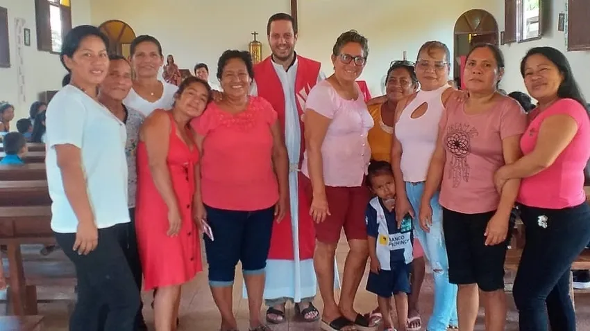 Acá eso es una dulce evidencia. En este lugar situado en la boca del río Napo no es que no haya sacerdote, es que no hay ningún misionero desde hace 10 años: ni religiosas, ni curas ni nadies. Pero la Iglesia de Jesús está viva, y seguramente su rostro es el más amazónico del Vicariato. ¿Y cómo es posible? Porque está el equipo parroquial, que tira palante con todo. Y sí, lo han adivinado, son ellas: toditas mujeres.
