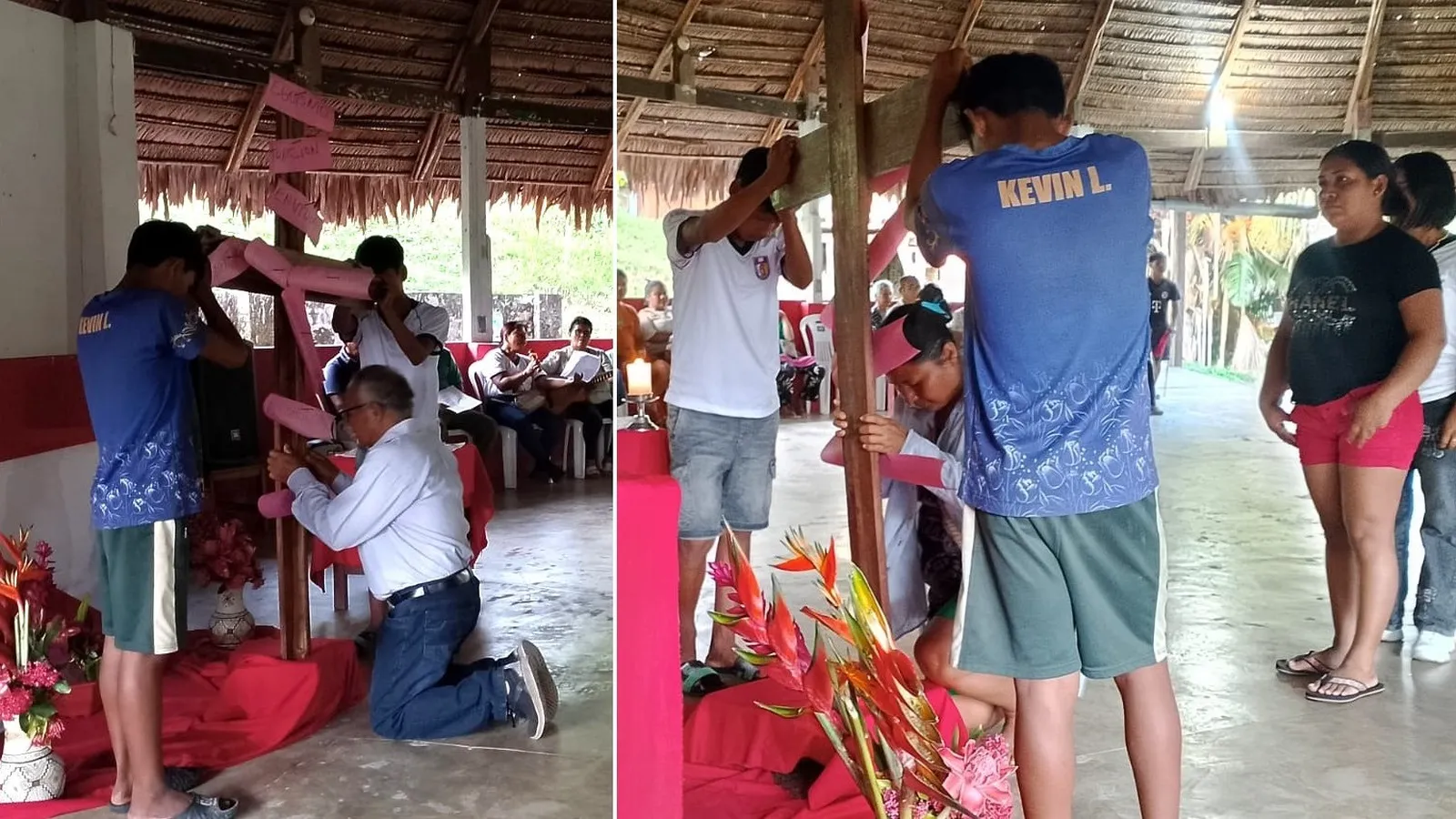 No se puede retratar el silencio, pero se puede captar la veneración en los lenguajes corporales. La adoración de la cruz es impactante por la veracidad del gesto, la reverencia con que las personas se acercan, la patente carga emotiva. La tortura injusta de Jesús conecta con siglos de sufrimiento, de maltrato, de olvido; desde la conquista, la esclavitud, el genocidio del caucho, el despojo de la Amazonía, los abusos a los indígenas, la ausencia del Estado… hasta hoy. Un grito mudo y atronador.