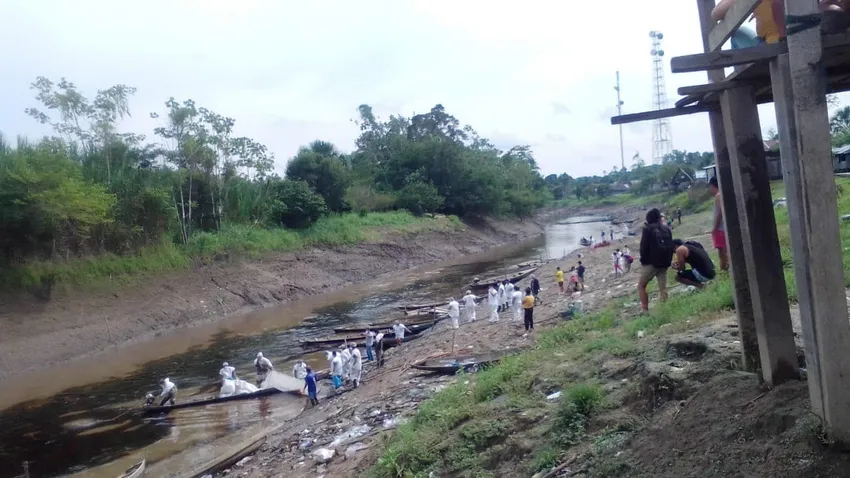 De nuevo Cuninico, como en 2014 y como todos estos años que han transcurrido, porque el atentado contra la vida y la salud no concluye cuando supuestamente “se limpia” el vertido, recién empieza: el agua queda contaminada, los peces envenenados, las chacras fracasadas. La gente toma esa agua y cocina con ella esos peces y demás alimentos; los moradores se bañan en la quebrada intoxicada, con esa agua lavan su ropa y sus enseres.