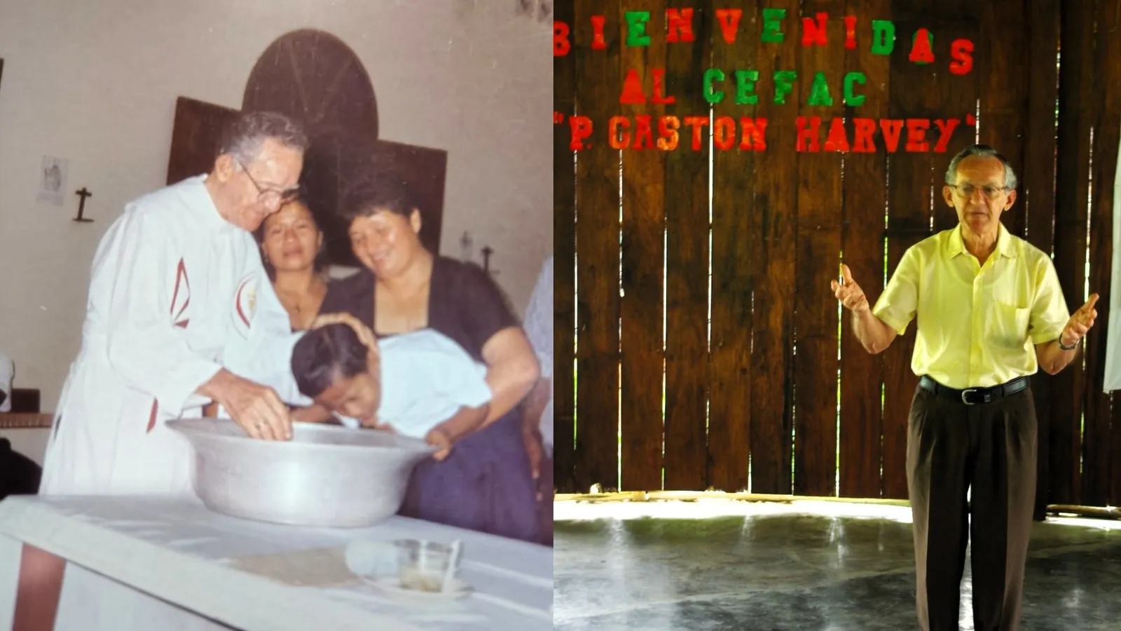 La semana pasada falleció en Canadá el p. Gastón Harvey, clérigo de San Viator, misionero legendario del Vicariato, fundador del movimiento de los animadores en Orellana e incansable navegador de las riberas de Indiana. Cuando me nombraron encargado de los animadores, al poco de llegar a la selva, descubrí que el encuentro anual de formación se llamaba “Centro de Formación de animadores cristianos CEFAC Gastón Harvey”, nada menos… Tuve el honor de conocerlo en persona el año pasado, como ya conté, pero ya me era familiar a través de tantas personas como siempre me han hablado de él y de su labor misionera. Acá recojo dos de esos testimonios, llenos de admiración y cariño. Gracias, Gastón. Descansa en el abrazo de Dios.