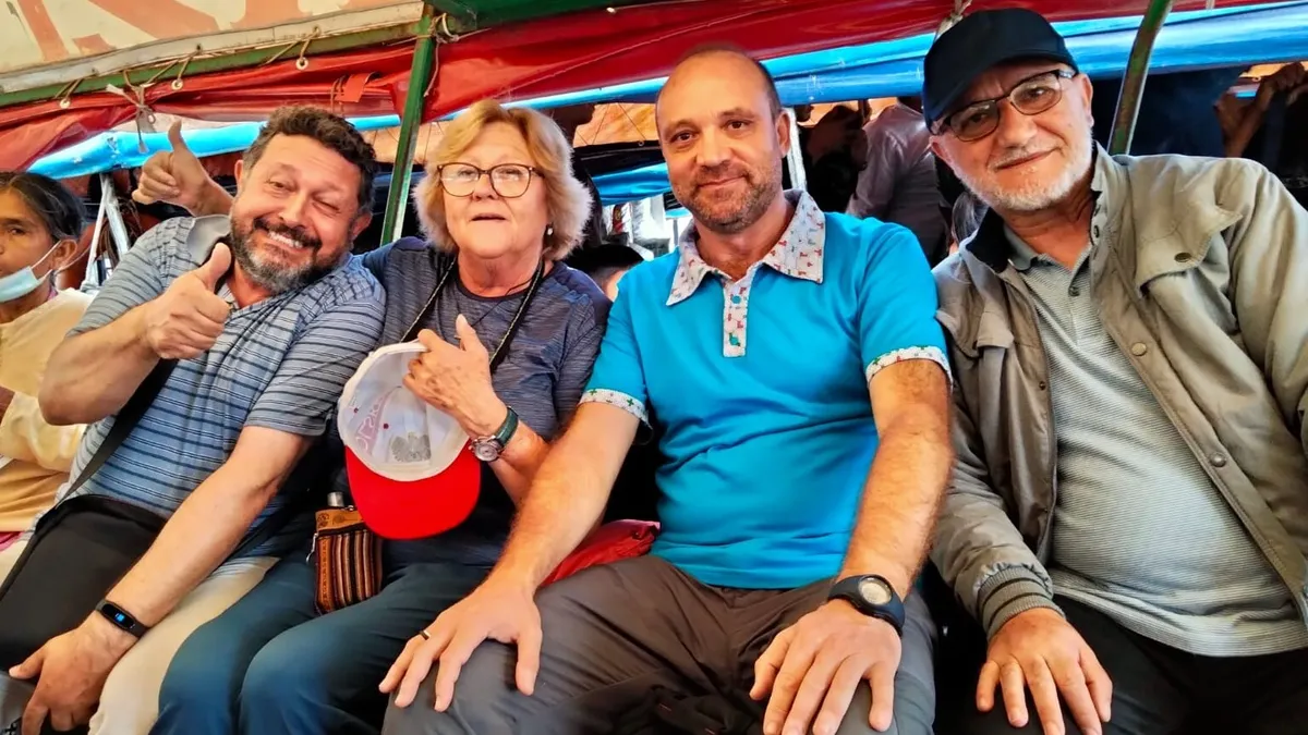 En la imagen Fede, el delegado diocesano de misiones; Coro, alma mater de la delegación y mujer entusiasmada con el Perú; y con gorro Manolo Vélez, mi compañero misionero en Llacanora, un pueblito cercano a Cajamarca. Estamos en el ponguero rumbo a Gallito, comunidad donde vamos a celebrar la Eucaristía del domingo, justo la mañana del día en que regresan a Lima.