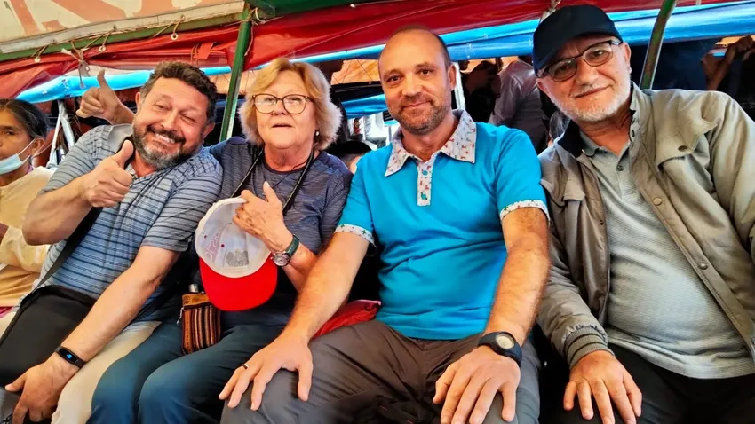 Pero hubo más aventuras para mis paisanos los días anteriores. Descubrieron algunos animales de la selva en Fundo Pedrito, acasito: la anaconda, la tortuga prehistórica, el pelejo, los lagartos y unos enormes paiches con bocazas que tragaban cuantos pedazos de pan les echábamos. Probaron la gastronomía regional en “El Bufeo Colorado”, y se maravillaron de que el restaurante se mece, porque es una balsa flotante.