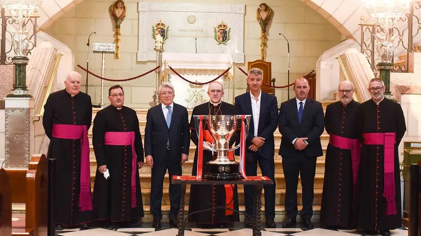 El Atlético de Madrid ofrece su trofeo a la Virgen de la Almudena