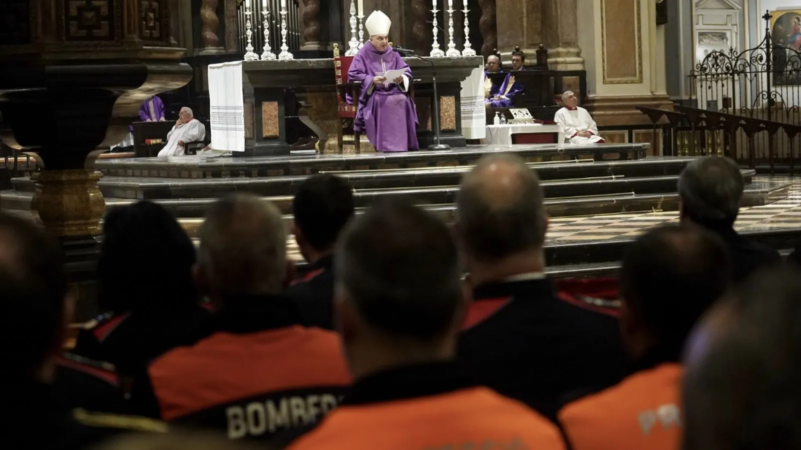 El arzobispo y los bomberos, en la catedral de Valencia | A. Saiz/Avan