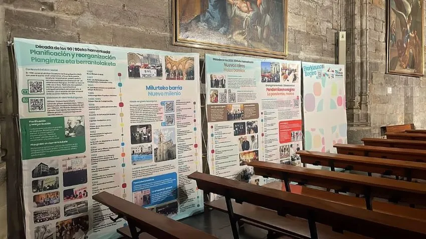 Paralelamente, la exposición itinerante organizada para la ocasión continuará su recorrido por Bizkaia. La muestra, que repasa la historia y la vida de la diócesis a través de paneles informativos y material fotográfico, proseguirá su viaje por las distintas vicarías, acercando este patrimonio comunitario a todas las parroquias y localidades.
