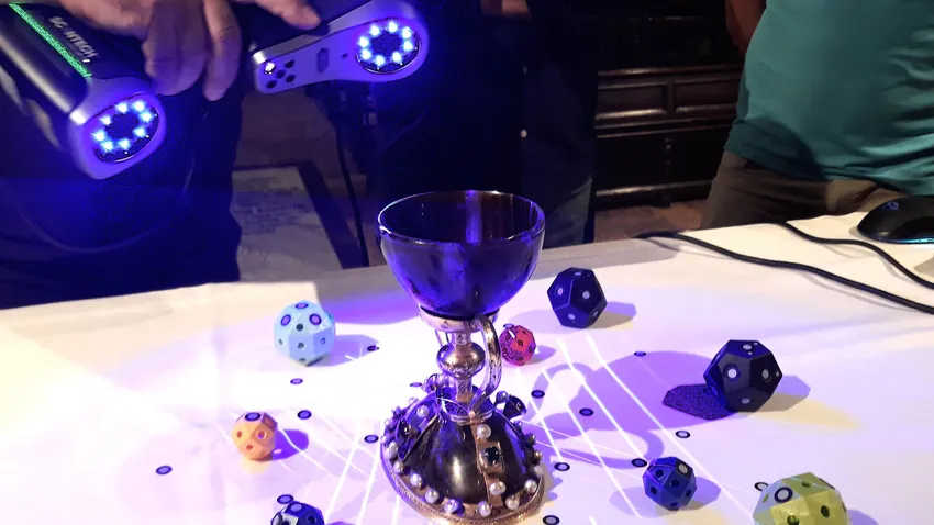 Actualmente existen multitud de escáneres para la digitalización 3D de objetos, pero el Santo Cáliz tiene "particularidades singulares para ser digitalizado adecuadamente". En primer lugar, la orfebrería de oro produce brillos, de modo que el haz de luz láser puede rebotar y producir distorsiones.