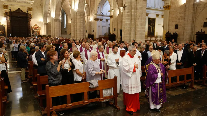 (Diócesis de Valencia).- El cardenal arzobispo de Valencia, Antonio Cañizares, presidió ayer por la tarde, en la Catedral de Valencia, abarrotada de fieles, la misa exequial por el eterno descanso del canónigo celador del Santo Cáliz de la Catedral, Juan Miguel Díaz Rodelas, al que ha definido como “un sacerdote de cuerpo entero que siempre transmitía alegría y comunicaba paz”.