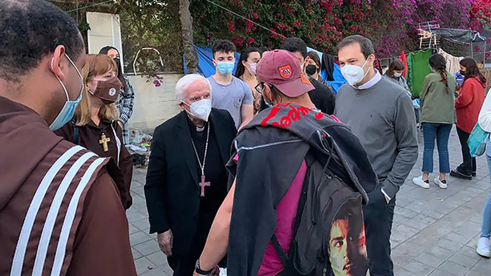 Así, el cardenal Cañizares, acompañado de estudiantes de la Universidad Católica de Valencia, la Universidad CEU Cardenal Herrera, la Universitat de València y el Politécnico, junto a la Fraternidad Voz de los Pobres, recorrió la zona del Botánic, visitando una a una las tiendas de campaña de este asentamiento en donde, actualmente, pernoctan cerca de 80 personas sin techo.