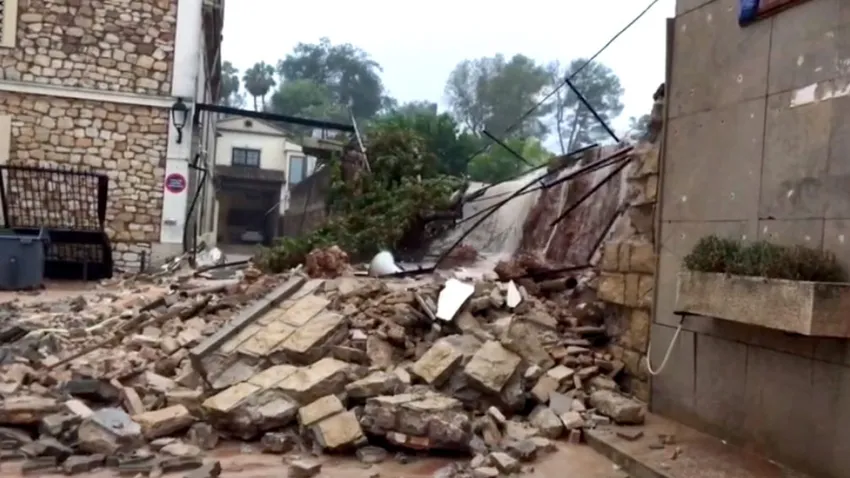 Derrume de el muro de un colegio de religiosos en Ontanyent
