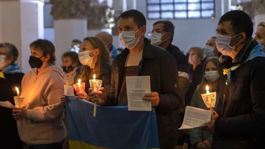 Varios cientos de personas han participado este domingo en Toledo en una vigilia por la paz en Ucrania que ha convocado el arzobispo de Toledo y primado de España, Francisco Cerro, entre ellos una veintena de ucranianos que residen en la ciudad, y que han participado activamente en la ceremonia religiosa.