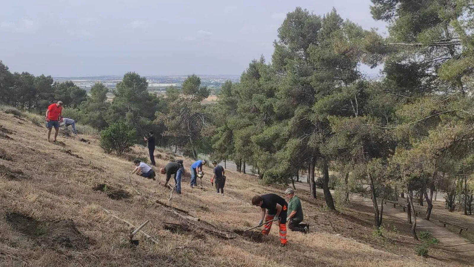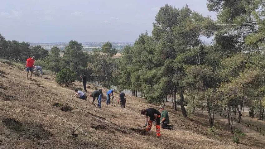 El sábado 27 de mayo, una decena de voluntarios comenzaron la acción de reforestación en el Cerro de los Ángeles, centro geográfico de la Península Ibérica y lugar emblemático en el sur de Madrid.