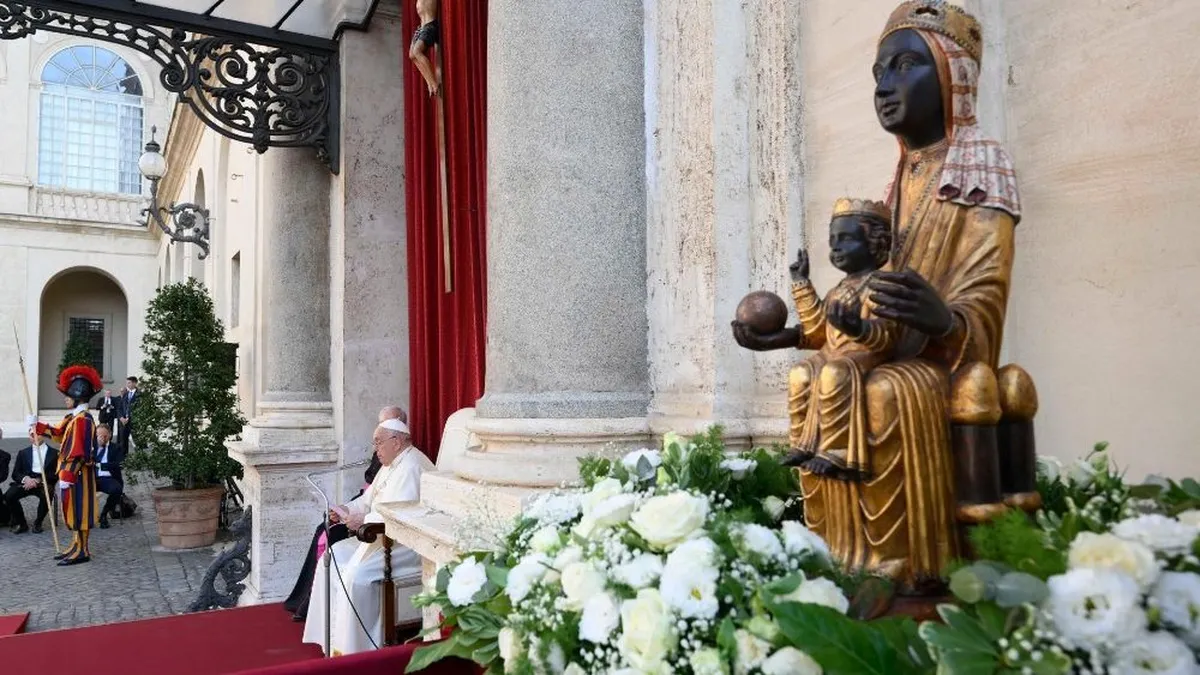 Francisco ensalza a 'la Moreneta', que "nos invita a vivir esa fraternidad universal, sin fronteras"