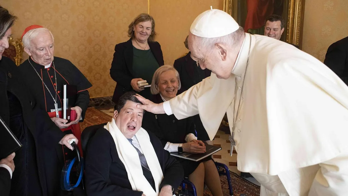Francisco recibe en audiencia a un joven valenciano con parálisis cerebral y a su catequista