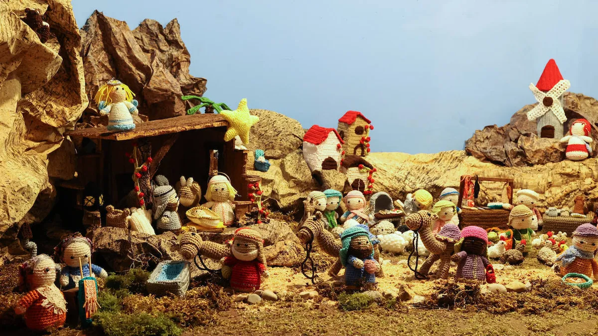 Homenaje a Petri Oleaga, la nonagenaria que elabora belenes con ganchillo